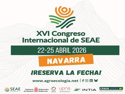 La Sociedad Española de Agricultura Ecológica y Agroecología (SEAE) anuncia la celebración de la XVI edición de su Congreso Internacional de Agricultura Ecológica: del 22 al 25 de abril de 2026 en Navarra. Este encuentro se realizará gracias al apoyo y colaboración del Gobierno de Navarra, la Universidad Pública de Navarra (UPNA), el Instituto Navarro de Tecnologías e Infraestructuras Agroalimentarias (INTIA) y el Consejo de la Producción Agraria Ecológica de Navarra (CPAEN-NNPEK).
