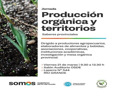 El evento se realizará el 21 de marzo de 9:30 a 13:30h en el Salón Auditorio OSDE, sito en Laserre 544, Río Grande. Su objetivo es visibilizar la producción orgánica en la provincia, promover prácticas sustentables y fortalecer las capacidades locales a través del intercambio con especialistas de diversas regiones del país.